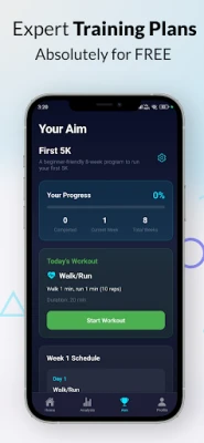 Set targets from 100m sprints to full marathons. Voice coaching keeps you motivated.
