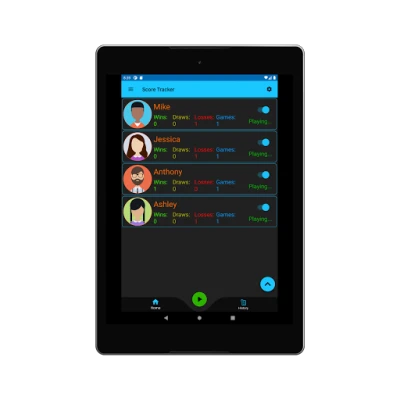 Score Tracker keeps track of scores for 100+ players and their wins, losses, draws, and the number of games played. In addition, players can easily choose the players they want to play in the game by simply pressing a switch to include them or not in the game.