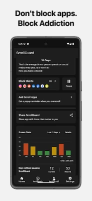 - Usage Statistics: You can only improve what you can measure. Track your daily screen time within ScrollGuard to help you reduce screen time and set better goals.