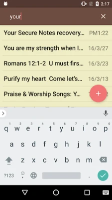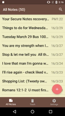 Secure Notes stores all your data on the sd card instead of taking up valuable internal memory. You can save memo, email, message, shopping list, account passwords and any secret notes.
