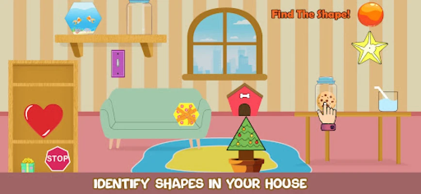Explore a house filled with familiar items and identify geometrical shapes found in daily life. This activity supports practical shape learning and builds visual memory for shapes for kids.