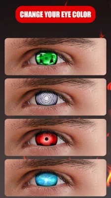 A different eye color changing app allows you to look differently and be unique! Be original and wear unusual red contact lenses in photo! Transform into a ninja with mangekyou Sharingan eye editor! An excellent selection of anime stickers for pictures is waiting for you in the ninja camera! Add awesome eye color stickers to your ninja selfie! Have endless fun with this Rinnegan eye editor!