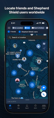Shepherd Shield users have a customized choice of categories, including high crime areas, active shooter alerts, terrorist threats, weather emergencies, and the addresses of registered sex offenders. Data can be viewed individually, as lists, and by using a map feature. Enable/disable the functions as you choose. There is also a “report” function so a subscriber may contribute information.