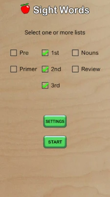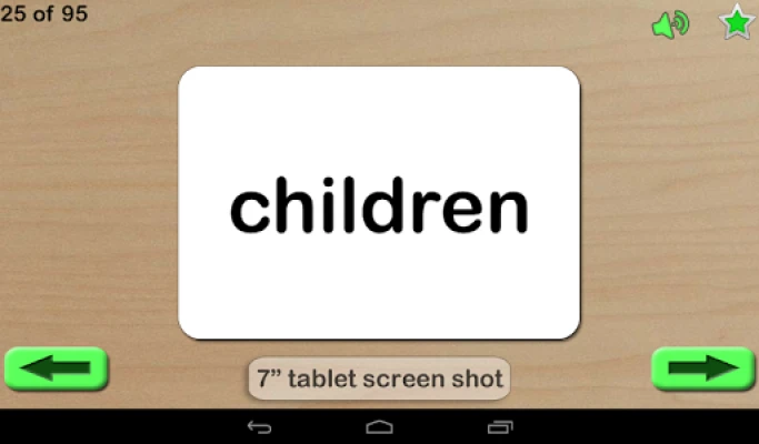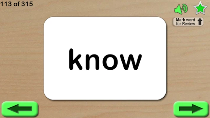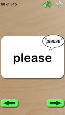 Features included: • They can be marked for the Review list (use the star to mark and menu to clear list) • The word is read out when touched • Long press buttons to jump to start or end