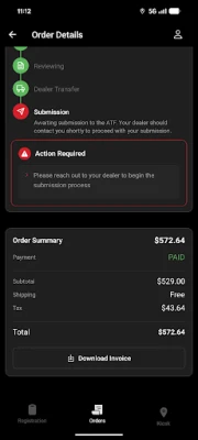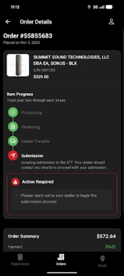 • ATF-compliant photo capture • Silencer Shop Kiosk locator • Registration and profile review • Order Status Information • Download Invoices for your Orders