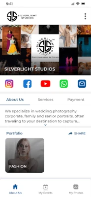 After an event is added, it will be in visible in my events section forever so that you don't have to find the link or QR code again. Our best-in-class Facial Recognition will find and display your photos instantly in the "my photos" tab. You can click on "all photos" tab to access other folders and photos from the event. Powered by Kwikpic.
