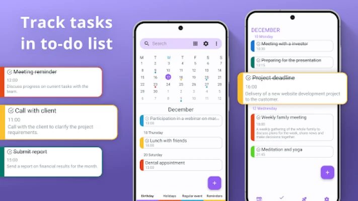 Finally, it is your ideal ahead planning app - Calendar - To-Do List! It is not just any calendar, it is a complete appointment planner and family coordination app. Whether you want to see the whole month at a time or the list of several activities for each of the day, viewing your events is easy. Reminders help you to always be on time and ready for the appointments of the day. The overarching theme is that any type of activity is suitable for a simple calendar.