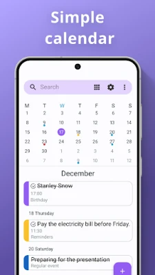 Be productive - Start using a high-powered customizable calendar app directly to your Android device. Simple Calendar - The To-Do List App is a calendar that is designed to work completely offline, and it will serve as your essential daily planner while keeping all details secure. It is intuitive enough to manage your personal calendar and schedule planner without any complicated features or granting permissions that aren’t needed.