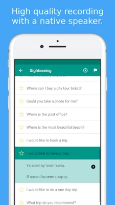 All Russian phrases and words are presented to you in both phonetic and original Russian writing. They are recorded by a native speaker from Russia.