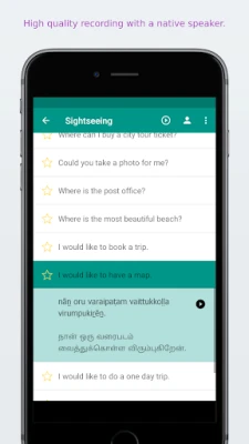 All Tamil phrases and words are presented to you in both phonetic and original Tamil writing. They are recorded by a native speaker from Sri Lanka.
