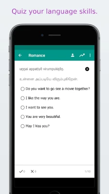 ✓ Adjust the quiz and flashcards settings for Tamil to English, English to Tamil