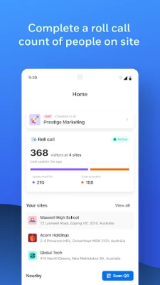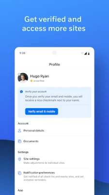 Allow visitors to view their invites and check in and out with just one tap, or scan QR codes to access sites using the app where branded QR posters are displayed.
