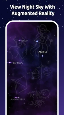Skymap view just hold up & point the device to the sky and have fun! You will see any stars, constellations and deep sky objects you are watching in real time.