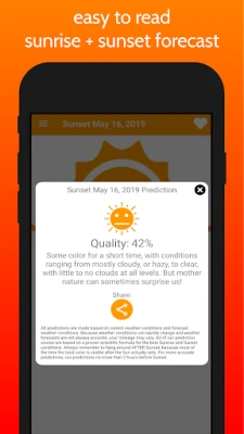 Configure automatic alerts and notifications for when the Sunrise and Sunset is going to be high quality at your location.