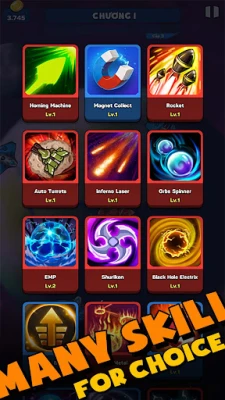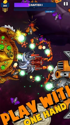 Hero spaceship has a lot of skills in weapons and assistive technologies, you get something new as you level up.