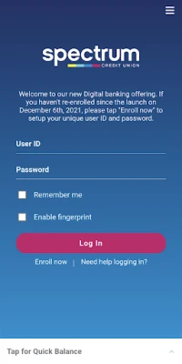Welcome to Spectrum Credit Union Mobile Banking! Some exciting updates to our app include a streamlined look and feel, features to make moving money easier, and a simplified login process for members with multiple memberships.