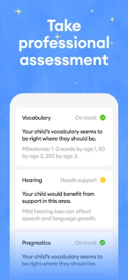 Backed by speech therapists and designed for parents, our app identifies your child’s strengths and areas that may need extra support—then provides a personalized learning plan to help them thrive.