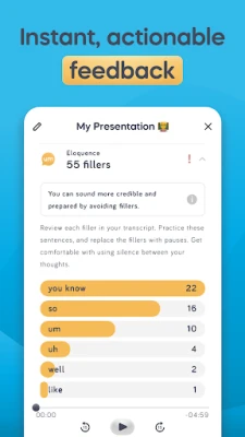Instant feedback on your speaking style. Speak confidently everywhere.