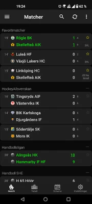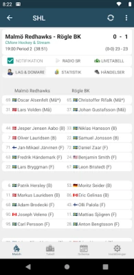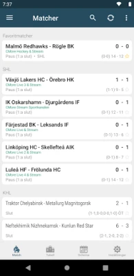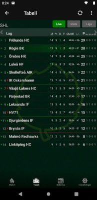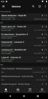 Follow your favorite teams for Swedish ice hockey SHL, HockeyAllsvenskan, HockeyEttan, SDHL, DamEttan, CHL, Hockey-VM, Hockey-OS, World Cup i Ishockey, JVM, NHL, National League Schweiz