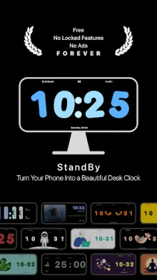 Transform your Android into a beautiful StandBy desk, bedside, and night clock display — completely free, ad-free, and fully unlocked.