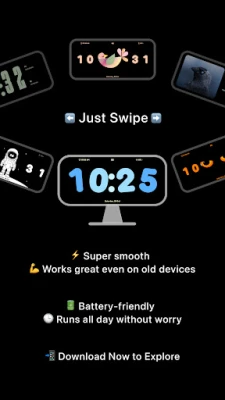 Inspired by iOS StandBy Mode, this app turns your device into a smart always-on digital clock — perfect for your workspace setup, charging dock, or bedroom nightstand.