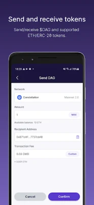 - DAG, Constellation’s native crypto token. Store, send, and receive — with zero transaction fees.