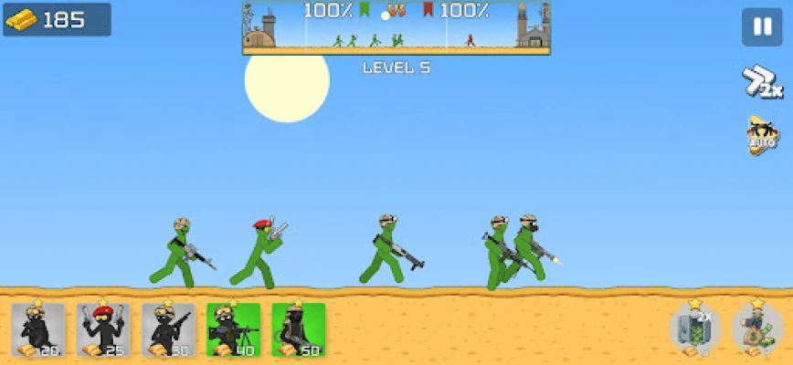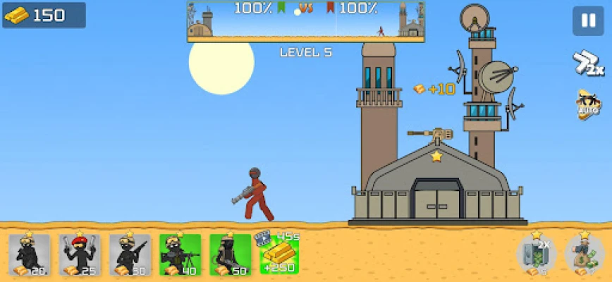 Command your stickman army, protect your base, and dominate the battlefield in intense modern battles. Every fight requires smart decisions — unit selection and perfect timing determine victory.