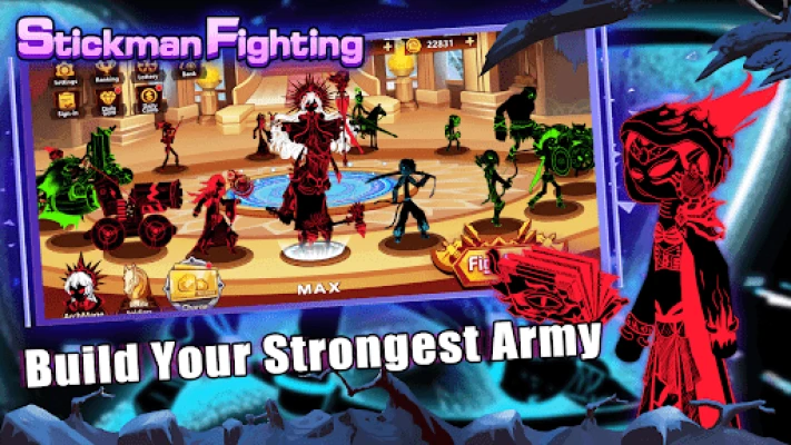 2. Continuously upgrade the warriors and skills , make your army stronger, and play stickman duel game;