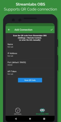 OBS Studio: This app requires OBS Studio version 28 (or above) to be installed on the host computer you want to control. Camera permission is required to scan the QR code from OBS.