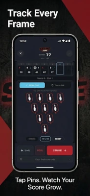 Frame-by-frame bowling scorer with visual pin deck. Foul tracking, ball changes, pocket hit tracking (High, Flush, Light, Brooklyn). Game formats: Multi-Bowler (up to 4), Baker Doubles & Team, Scotch Doubles, No-Tap. Match Play with opponent score.