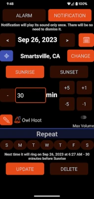 Need to set alarm to 30 minutes before the sunrise? Maybe sunset or 30 minutes after sunset? This app is what you are looking for!