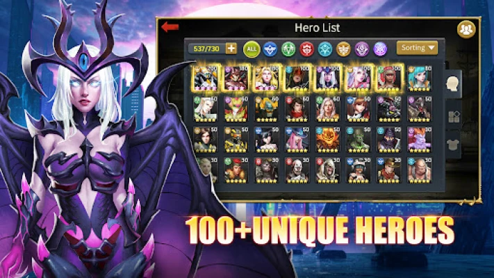 Start strong with free powerful T0 heroes — Snow Queen Joanna and Dragon Queen Aphrodite — rewarded right at the beginning of the game. Unlock every other T0 hero without heavy spending to complete your dream lineup.