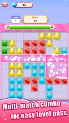 Basic Gameplay: Fill an entire row or column with blocks to complete elimination; earn points through eliminations to meet the level objectives. Level Design: Levels unlock sequentially starting from Level 1, with progressive increases in difficulty as you advance. Clearing Tips: Scoring doubles when eliminating multiple rows at once—eliminating 2 rows gives 2x points, eliminating 3 rows gives 3x points—helping you clear levels more smoothly. With a soft candy-colored art style, intuitive interface layout, and simple, easy-to-learn controls, it’s ideal for casual relaxation during fragmented time.