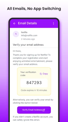 Need a quick and private email address? Our app allows you to create a disposable email within seconds—perfect for signing up on websites without exposing your real email.