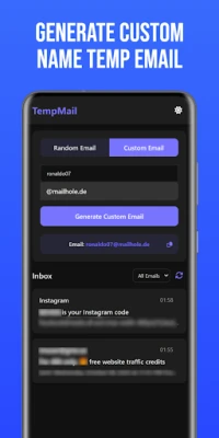 ⚙️ Random & Custom Emails: Create disposable addresses instantly.