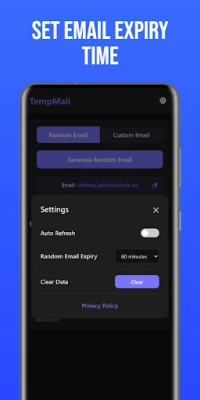 Each temporary email address comes with an expiry timer, ensuring your data never stays longer than needed. By default, the expiration is set to 1 hour, but you can easily change it from settings to 10 minutes, 30 minutes, or 1 hour. Once the timer expires, the app automatically generates a new email address so you can continue receiving messages without interruption.