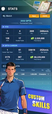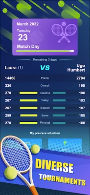 In this game, you will experience thrilling tennis duels and an immersive career journey. Unique gameplay brings you a rich professional tennis path, from a young rookie to a world champion.