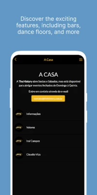 Tenha todo conteúdo da The History na palma da sua mão. Acompanhe a programação em tempo real, participe de promoções, descontos com listas, pedidos de reservas, galeria de fotos, rádio E-music The History e fique sabendo todas as novidades.