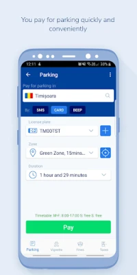 You get notified 5 minutes before parking expires, so you can extend it from anywhere. The parking payment is available in over 60 cities in Romania (Alba Iulia, Alexandria, Arad, Bacau, Baia Mare, Bistrita, Botosani, Brasov, Buzau, Baile Felix/1 Mai, Baile Herculane, Cluj Napoca, Constanta, Corabia, Craiova, Campulung Moldovenesc, Campulung Muscel, Dej, Deva, Dorohoi, Drobeta Turnu Severin, Focsani, Falticeni, Galati, Huedin, Iasi, Jibou, Ludus, Mamaia, Mangalia, Medias, Odorheiu Secuiesc, Oradea, Piatra Neamt, Pitesti, Ploiesti, Reghin, Radauti, Roman, Ramnicu Sarat, Ramnicu Valcea, Satu Mare, Sfantu Gheorghe, Sibiu, Sighetu Marmatiei, Sighisoara, Slanic Moldova, Sovata, Statiuni litoral, Suceava, Tecuci, Timisoara, Turda, Targu Jiu, Targu Neamt, Targu Secuiesc, Tirgu Mures, Vatra Dornei, Zalau).