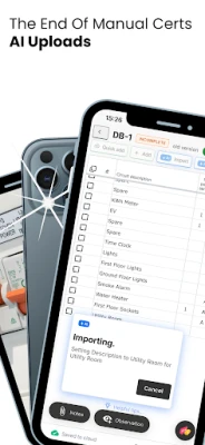 Experience unparalleled efficiency with Tradecert's AI capabilities. Our innovative AI Uploads feature allows you to simply take a photo of a distribution board, and the app will automatically populate all relevant data directly into your certificate, eliminating manual entry. AI Observations help you intelligently spot potential issues or discrepancies, while AI Notes enable quick, smart annotations directly within your reports—significantly saving you time and enhancing accuracy during inspections.