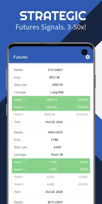 Get daily signals for exchanges like Binance, Bybit, Kucoin, Poloniex, and more. Spot and futures signals offer leverage (3-50x+) to help you make well-informed trading decisions.