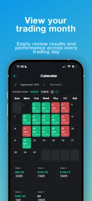 View your trades on an interactive calendar. See daily and weekly stats at a glance.