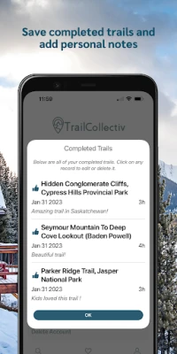 - Complete trails to keep track of number of trails, elevation, and distance (you’ve completed) in your profile!