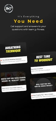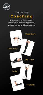 • Training upgrades—similar workout suggestions, text-to-speech training descriptions, alternative exercises if equipment is unavailable, weekly training unlocks, equipment weight logging, workout duration tracking, and next workout previews