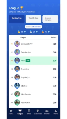 ๐ CLIMB THE LEADERBOARDS Compete in three tiers of competition: ๐ฅ Daily Cups โ Battle for the top spot every day and earn trophies ๐ฅ Weekly Cups โ Dominate the week for bigger rewards ๐ฅ Seasonal Championships โ Accumulate trophy points across months-long seasons to become the ultimate trivia champion