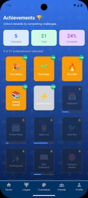 ๐๏ธ EARN TROPHIES & ACHIEVEMENTS Collect Daily Cup and Weekly Champion trophies. Unlock dozens of achievements across categories like Streak Master, Speed Demon, and Trivia Scholar. Track your progress from Bronze to Diamond tier. ๐