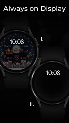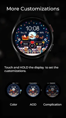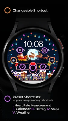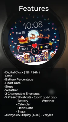 - A festive and colorful digital watch face featuring Santa Claus on Christmas Night.