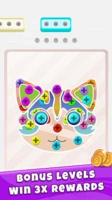This Unscrew Puzzle game transforms sorting screw pins into a colourful brain teaser puzzle ! Dive into this brand-new screw puzzle game and experience addictive gameplay that will keep you engaged for hours. Unscrew Jam is a type of colour match screw game, where you got coloured screw pins scattered across the board, just unscrew it and win the title screw master.