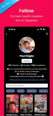 Imagine Spotify, but instead of songs, health creators share healthy recipes, workouts, mindfulness, and education. That's Upspace.