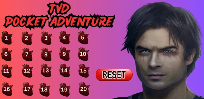 The Vampire Diaries Pocket Adventure Game takes you back to Mystic Falls where Damon looks to do battle with the likes of zombies, werewolves, vampires and many more terrifying monsters in this 20-stage saga. Collect hearts to increase your health, steer clear from vervain and other deadly obstacles while using your stake to slay evil!